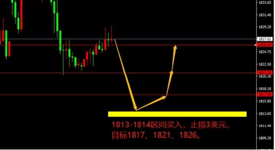 1813-1814区间买入,止损3美元,目标1817、1821、1826。